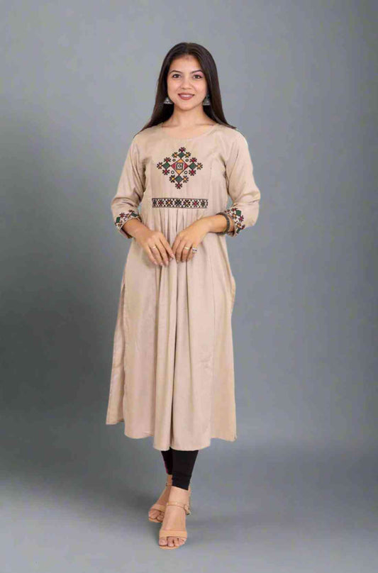 Embroidered A-line Beige cross stitch Rayon Kurta