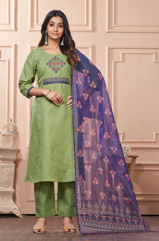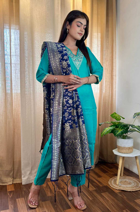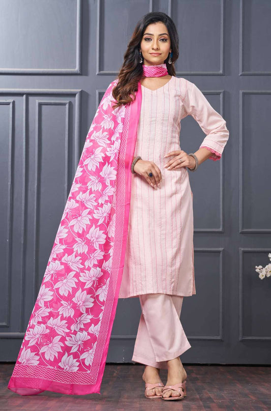 Pure cotton pintucks multicolor thread embroidered Kurta set (2 color)