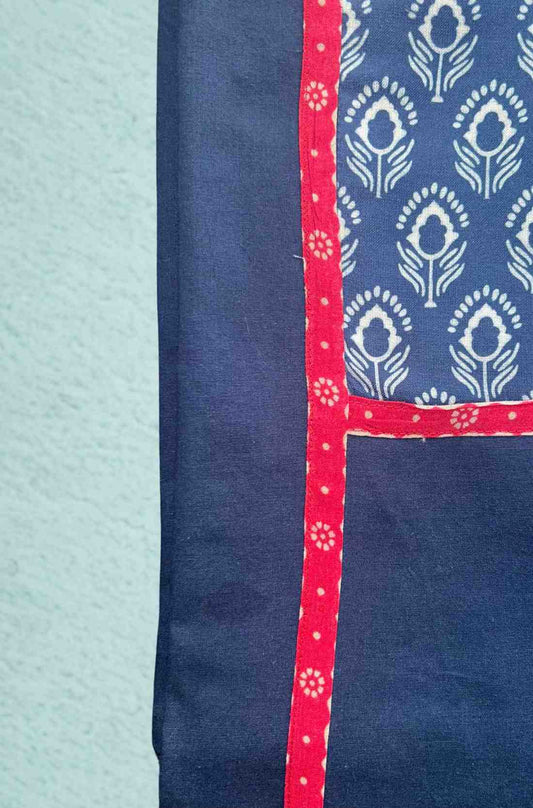 Indigo block printed pure cotton straight kurta Unstitched